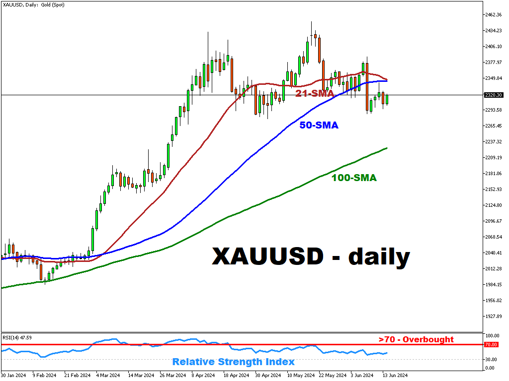 Gold is rebounding after a ~1% drop on Thursday, June 13, following the lower-than-expected US PPI reading.