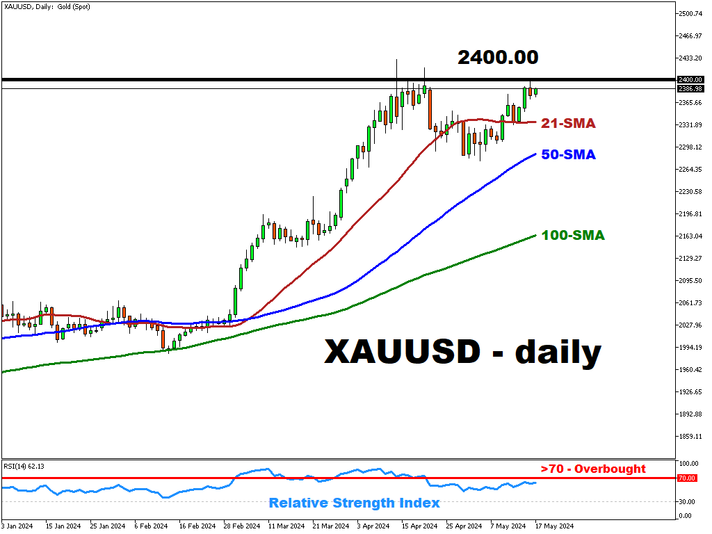 Gold is bouncing back towards the $2400 psychological level after slightly weaker US macroeconomic data was released this week.