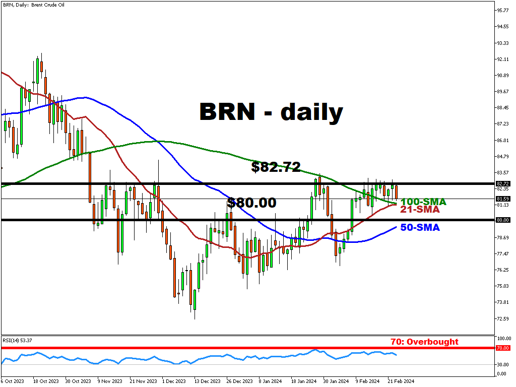 Oil prices are under pressure, hovering above the 100-period (~81.264) moving average (SMA) following the release of FOMC minutes which have indicated the potential delay of the highly anticipated Fed rate cuts.