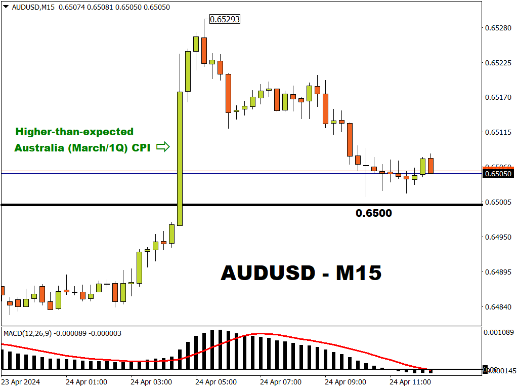 However, AUDUSD has since unwound much of its 300-point spike following the CPI surprise.