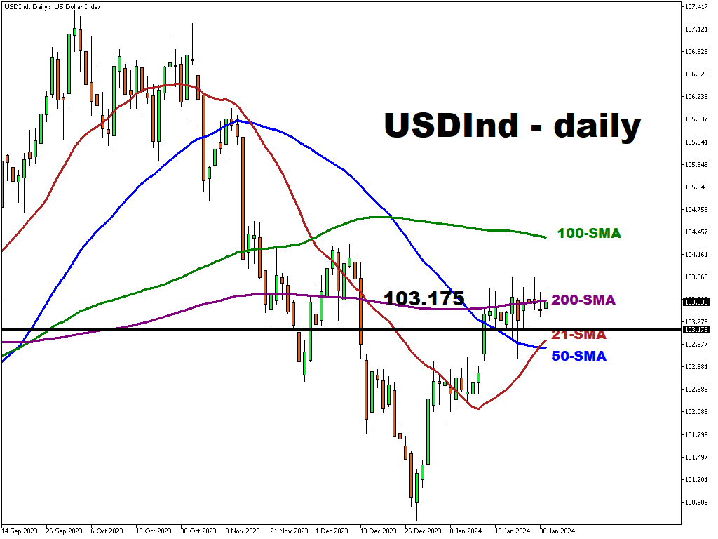 If Powell is successful and markets do pare some of the excessive bets, this should underpin some support for the USD which continues to trade around its 200-day simple moving average.