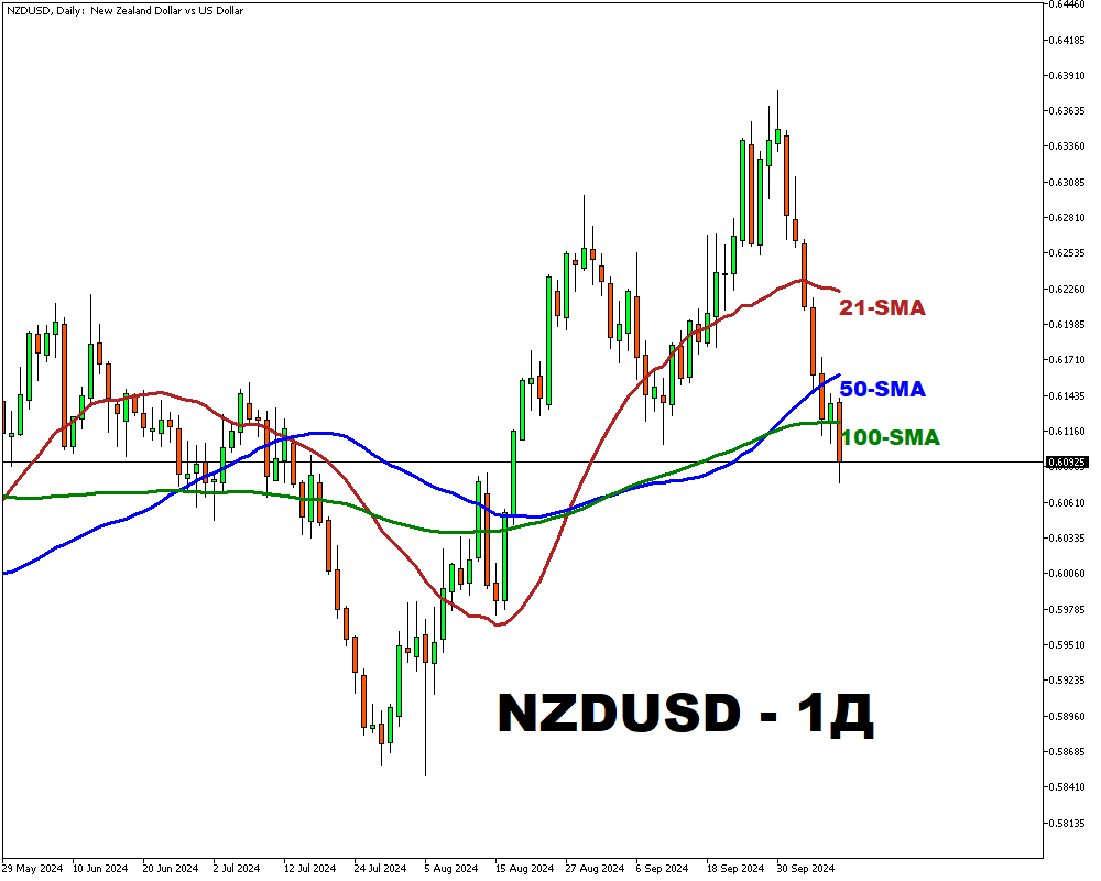 Пара NZDUSD достигла 7-недельного минимума после того, как Резервный банк Новой Зеландии принял решение о снижении процентных ставок на 50 базисных пунктов (б.п.).